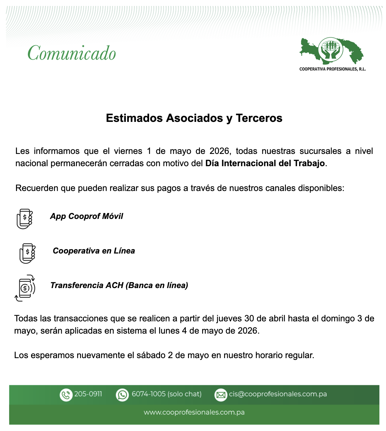 Manténte informado de las últimas noticias de nuestra Cooperativa.